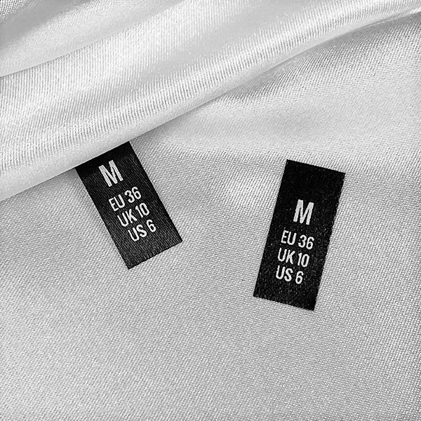 Etiquetas personalizadas com tamanhos, para costurar em vestuário ou vários artigos de vestuário, feitas para encomendar de material têxtil de alta qualidade Este tipo de etiqueta têxtil é feito usando as tecnologias mais avanças no campo de impressões digitais num suporte têxtil. As etiquetas são impressas num cetim especial através do método de transferência térmica, com uma qualidade de impressão impressionante e alta resistência à lavagem.