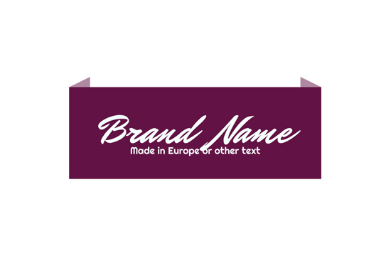 Etiqueta têxtil bordada com um design estiloso de modelo Stylish Style personalizada em diferentes cores e dobrada nas bordas para ser presa a um produto têxtil. Este tipo de etiqueta bordada é feito de materiais de alta qualidade, usando as tecnologias mais avançadas do campo de bordado digital a um nível industrial.