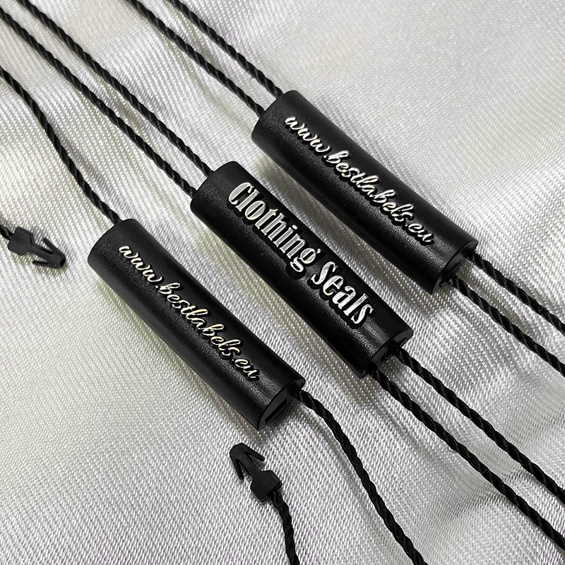 Selo de plástico ST-M251 com forma cilíndrica e um design cativante e texto personalizado em ambos os lados, adequado para vários artigos de vestuário como jeans, calças, fatos de mulher e homem e muitas outras peças de roupa, sapatos e malas. Este tipo de selo é feito de materiais de alta qualidade usando as tecnologias mais avançadas na área.