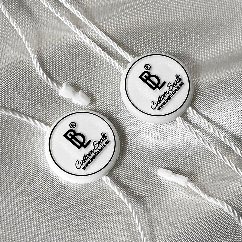 Selo de plástico ST-M87 com um design elegante e uma forma redonda, pode ser personalizado em ambos os lados com o nome da marca ou o emblema/marca comercial e é ideal para produtos como roupa, malas, sapatos. Este tipo de selo é feito de materiais de alta qualidade usando as tecnologias mais avançadas na área.